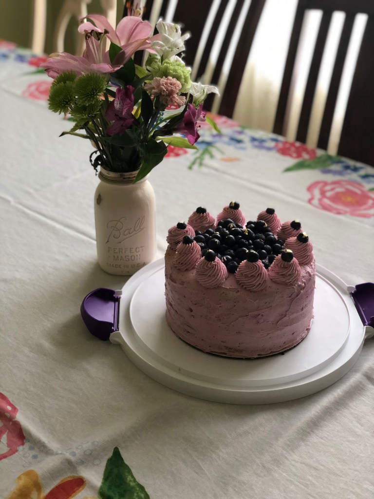 One of my favorite flavor combinations, blueberry and lemon. The sweetness of the blueberries pairs so well with the tartness of the lemon. I made this cake for Mother’s Day last year and it was a big hit, which made me very happy since I was very proud of this one and all the work I had put into it. I orignally made this as a cupcake (which was a huge hit) but then started experimenting with the idea as a layer cake, an thus this delicious creation was born. This is the first of my own original recipes, more to come. Now without further ado, onto the recipe.